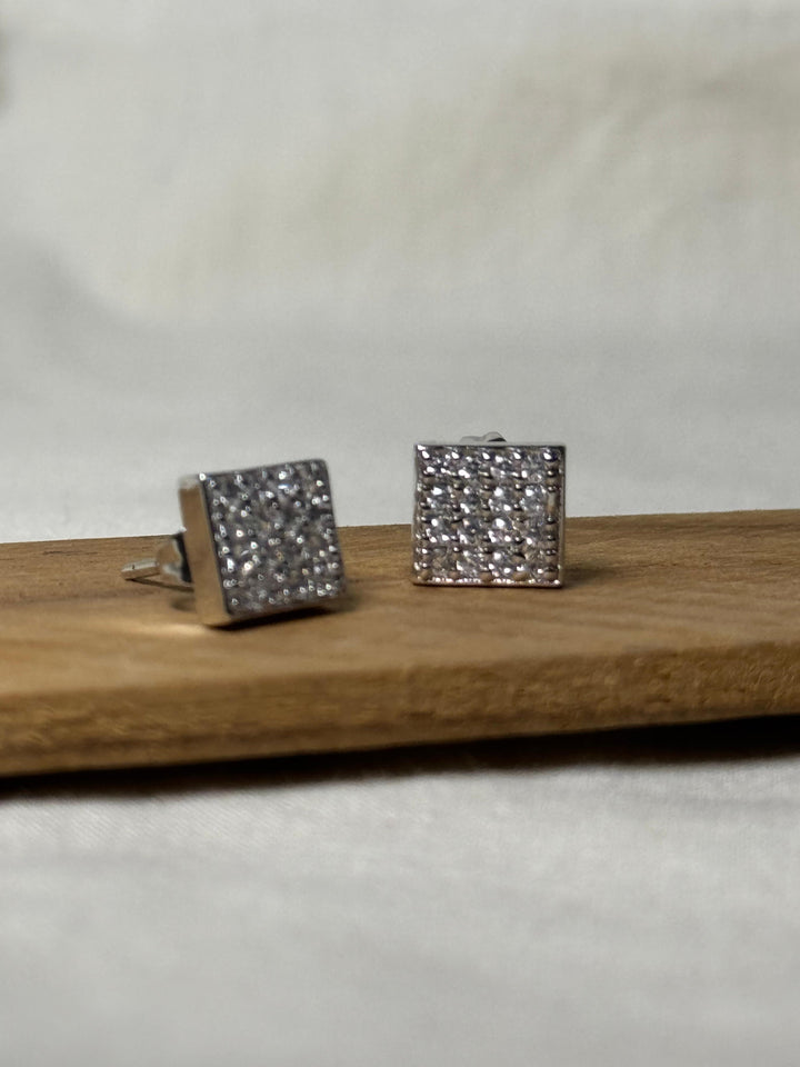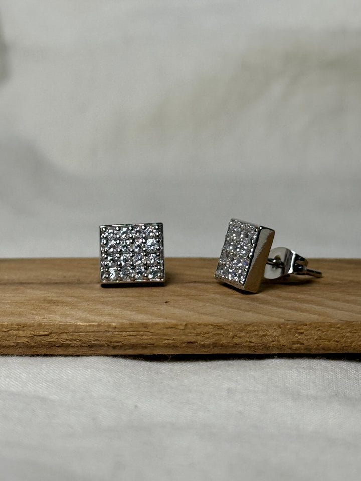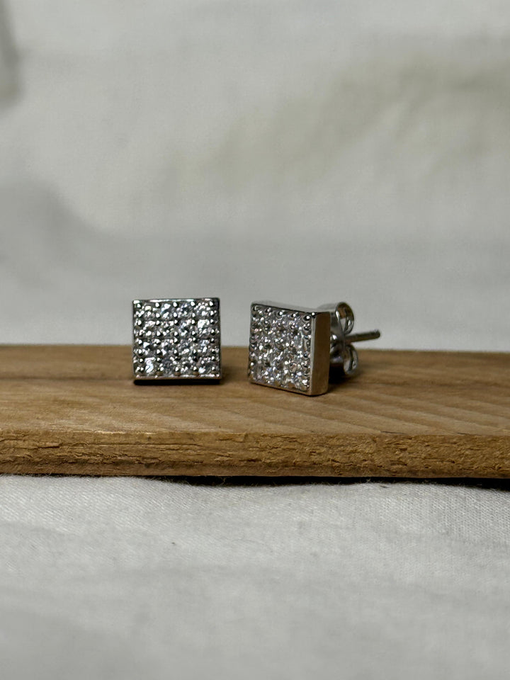 Square Air Iced Out Stud Earrings (Sparkling Silver)